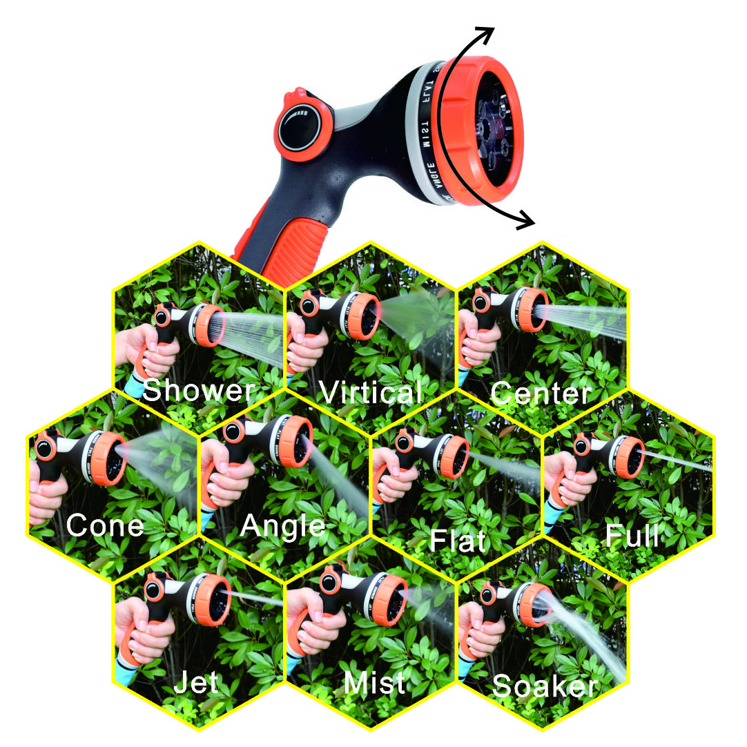 BB-2404 1、バルブ付きプラスチック10ウェイガーデンウォータースプレーガン