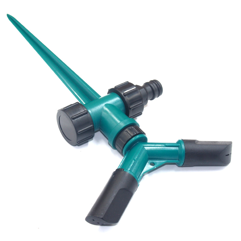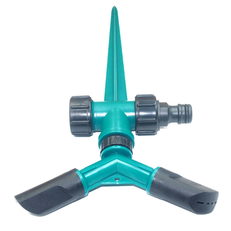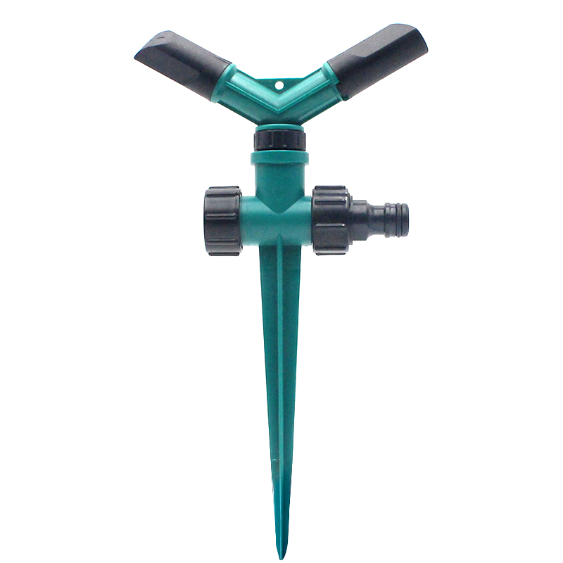 プラスチックスパイク付きのプラスチック 2 アーム水回転式スプリンクラー。
